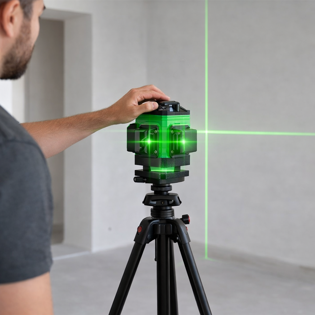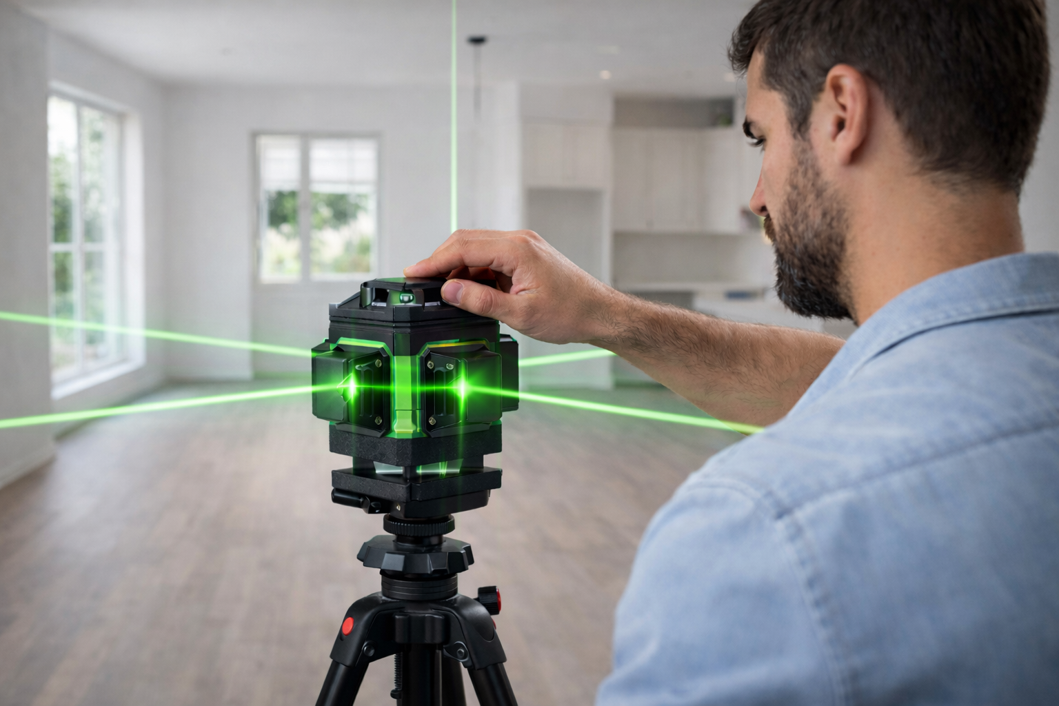 Un niveau laser permet de projeter des lignes droites horizontales et/ou verticales afin d’aligner ou de mettre à niveau différents éléments.